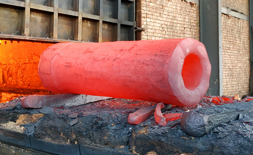 由操作機(jī)放入鍛造設(shè)備,根據(jù)原材料的大小和鍛造比要求進(jìn)行相應(yīng)的墩粗,拔長(zhǎng)等工藝,實(shí)時(shí)監(jiān)測(cè)鍛件尺寸,并通過紅外測(cè)溫儀控制鍛造溫度。
