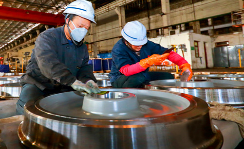 經(jīng)過質(zhì)量檢測(cè)后成品鍛件,經(jīng)過防銹噴漆等處理,裝箱進(jìn)入成品庫(kù)以備發(fā)貨。